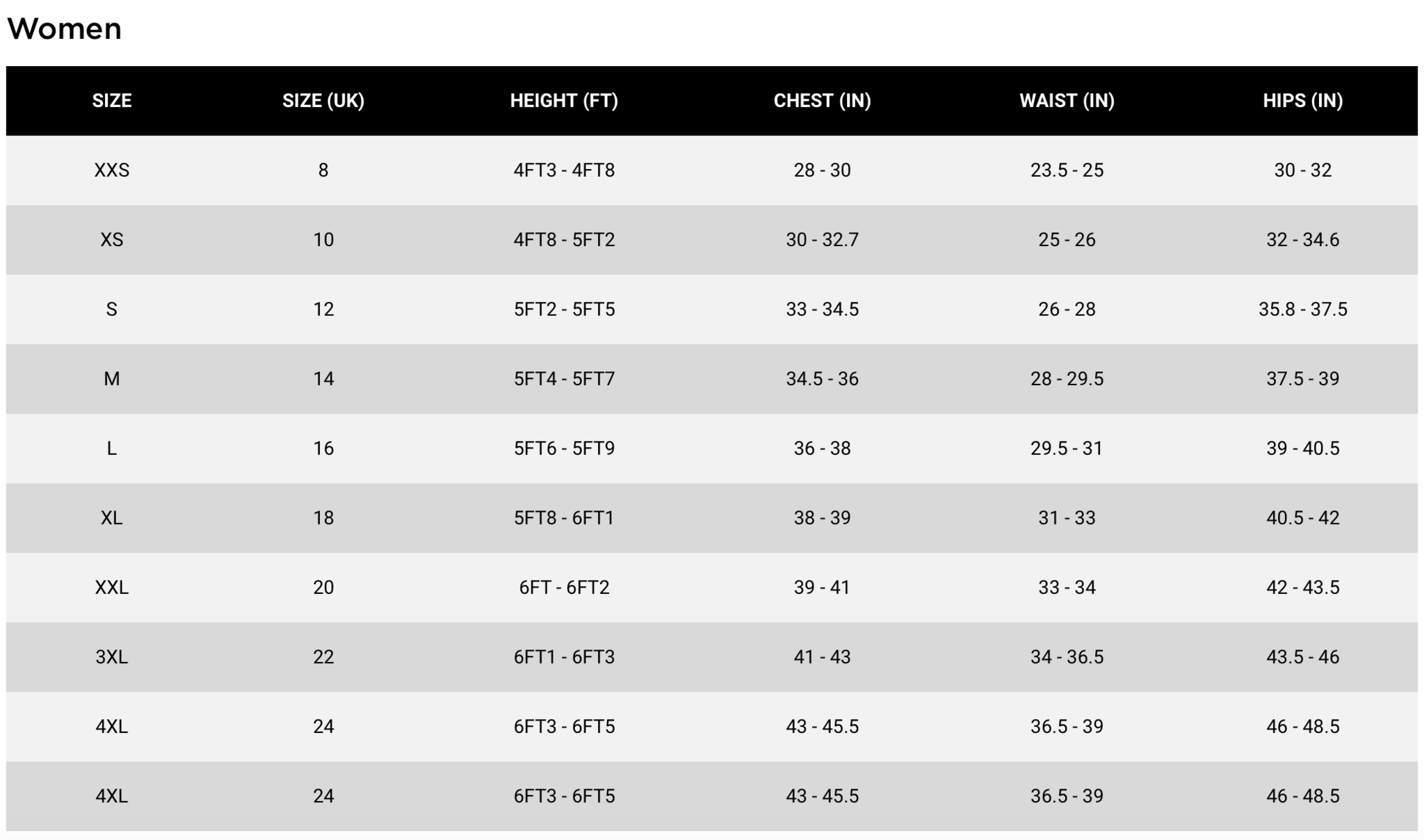 The 'Girl' and 'Women' size guide measurements are only applicable to the women specific products in the 'Woman' section.