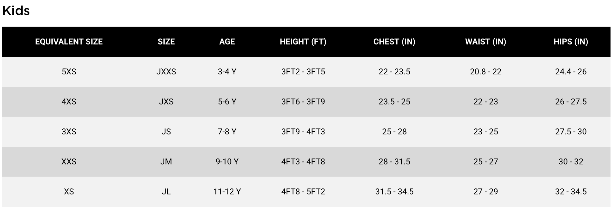 Please note these are approximate sizes. These measurements are referring to the body measurements and not to the garments.